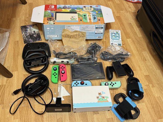 ★【物品名稱】:動物森友會特仕機++joy con一組手把+原廠手把+手把座充+方向盤*2+