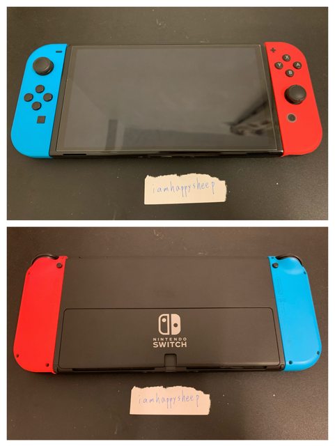 二手Switch OLED 紅藍主機,已貼玻璃貼,附硬殼包+三款遊戲