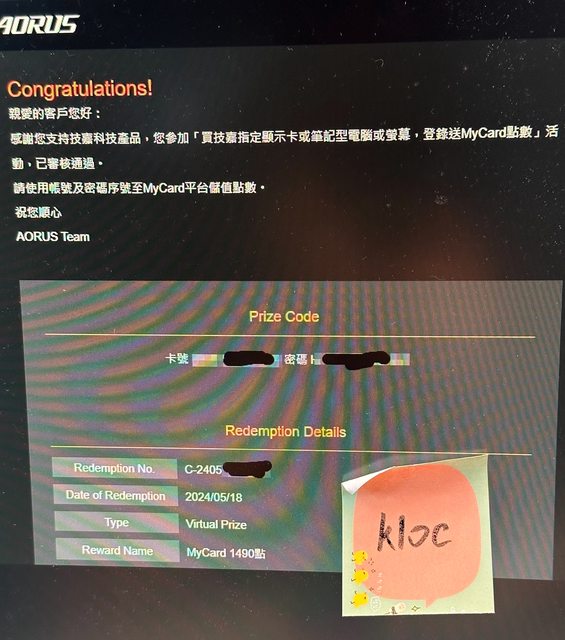 【附 註】:購入技嘉商品贈送的