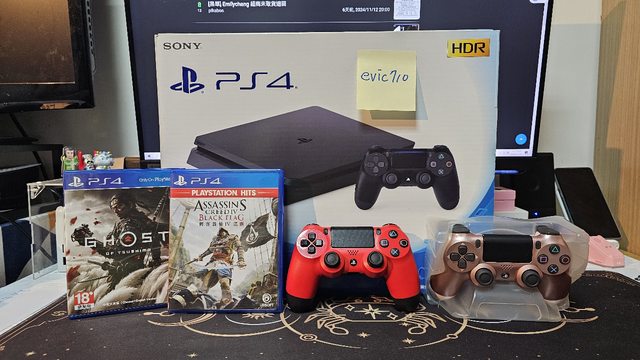 ★【物品名稱】:PS4 Slim+紅色及玫瑰金手把+兩款遊戲 (刺客教條黑旗、對馬戰鬼)