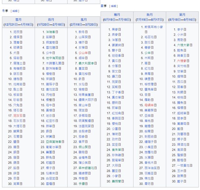 四季從秋季開始、一年36周、1周10天、1個月30天