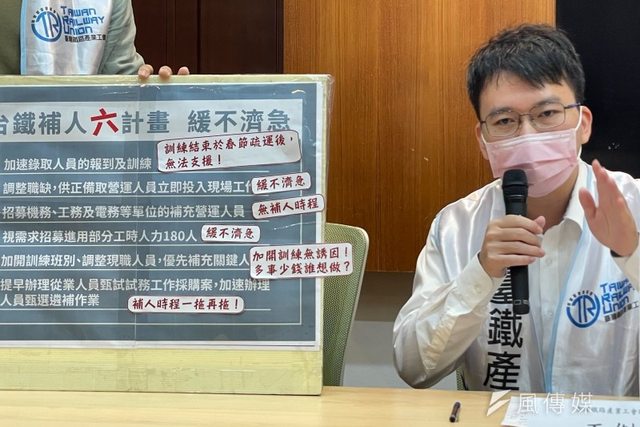 記者會,質疑目前6項人力補充措施「緩不濟急」,台鐵產業工會理事長王傑怒轟,台鐵已