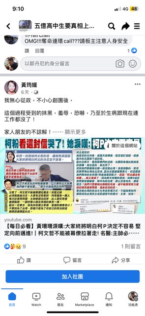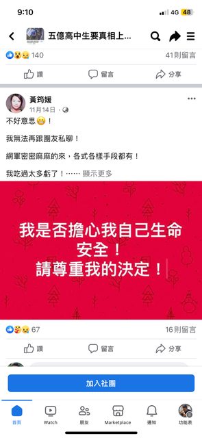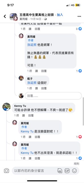 然後臉書朋友希望他能專注在五億高中生的命案不要一直談政治