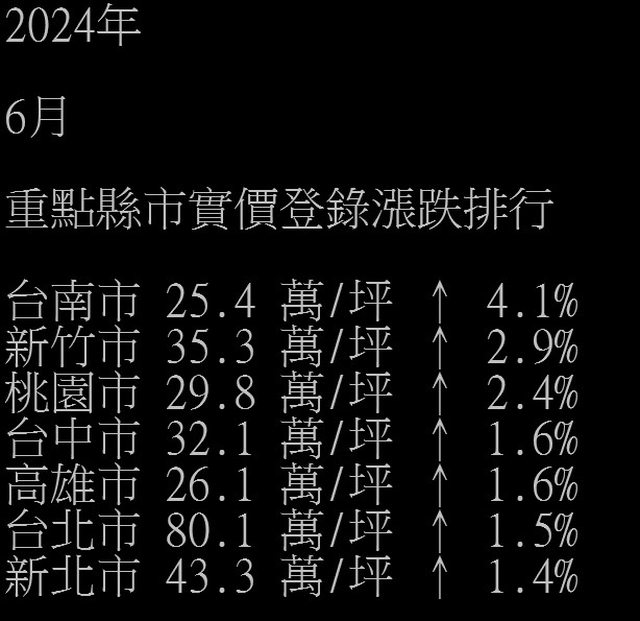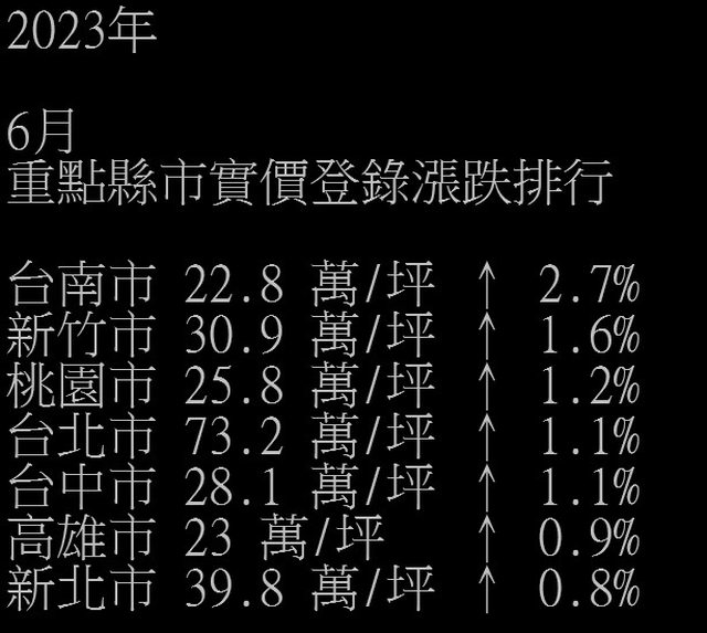 自己算了一下 2023 06 至 2024 06六都的漲幅