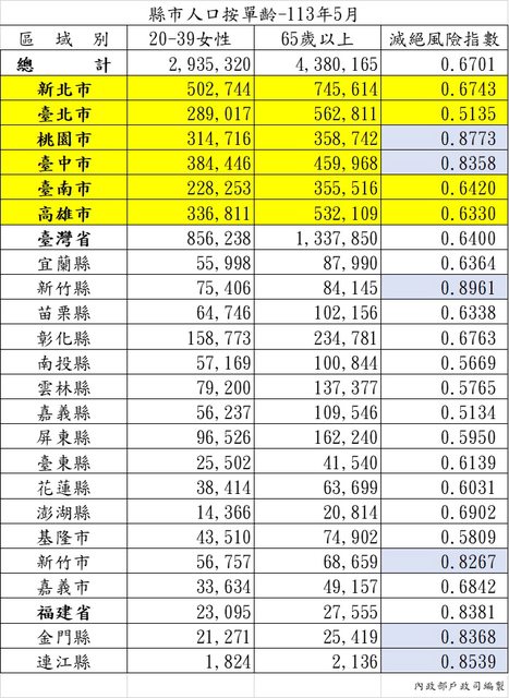 大家對於人口滅絕指數