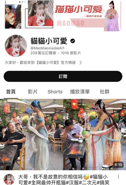 去年11月才加入YouTube的大陸女生