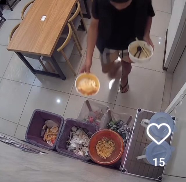 她放這樣說顧客倒了一大堆剩菜剩飯