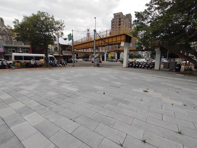 完工後就露出專研中心的圍牆 人行道也變寬了
