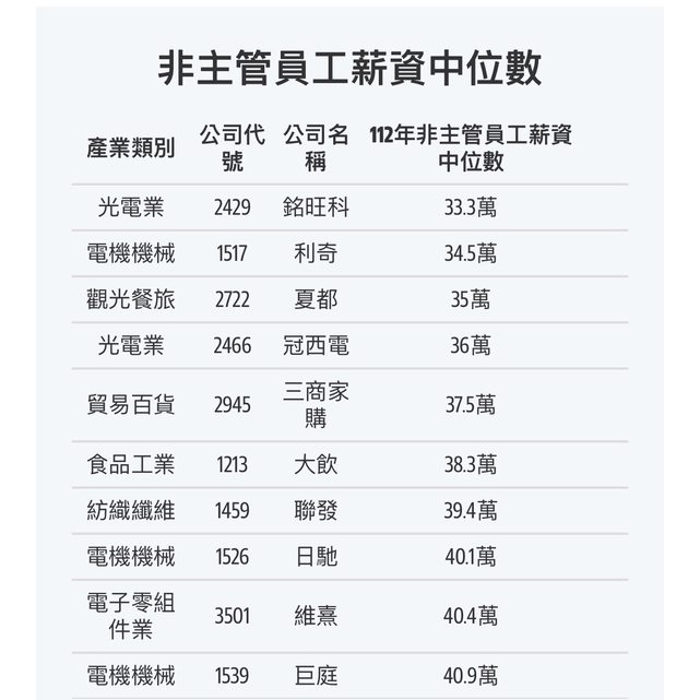 : 上市櫃公司去(112)年全體「非主管」平均年薪、及中位數排行出爐!據悉,證交所