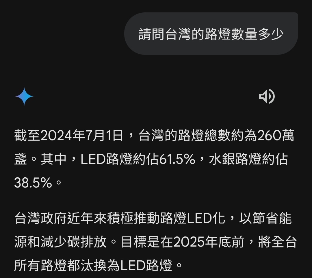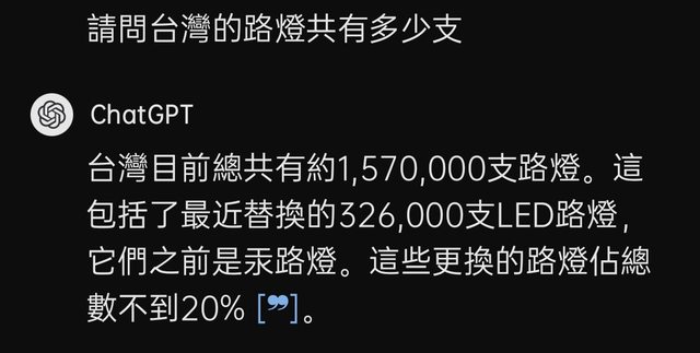 是這樣啦,最近聽說有大概兩萬五千個好心人想要認養路燈,所以我問ChatGPT台灣有多少路燈