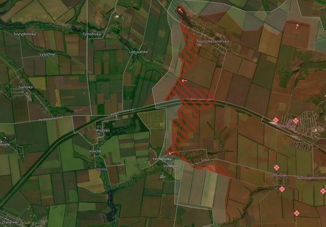 烏克蘭軍隊最近向 Hryhorivka北部推進。