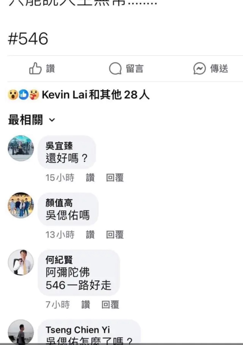 → jan58912: 手何紀賢在臉書裡留言一路好走 223.137.25.159 07/01 22:23