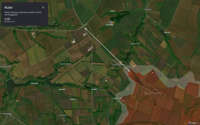 軍隊最近沿著 Rozdolivka東北部的防風林前進。