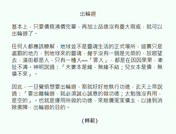 → fifa186: 佛法就是教你如何從輪迴中解脫 118.171.18.234 07/12 22:49