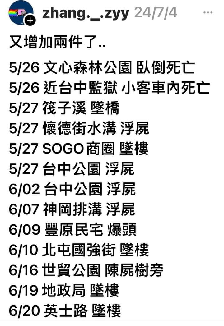 → OldWang911: 是自殺還是他殺,我台中人晚上都不太 42.70.19.248 07/13 01:20