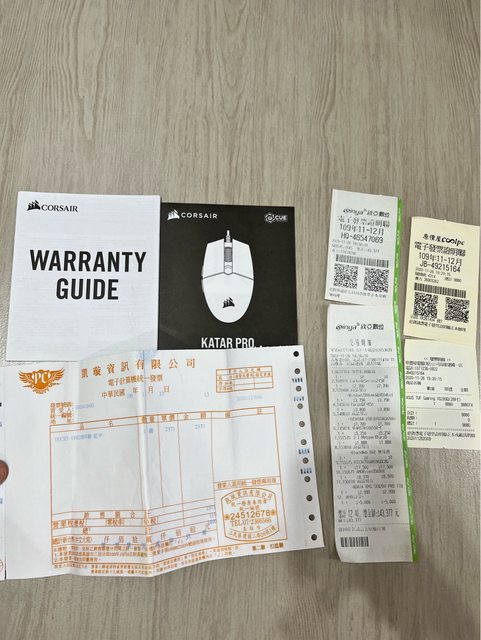 滑鼠、耳機、外接式硬碟的購買日期已無證明
