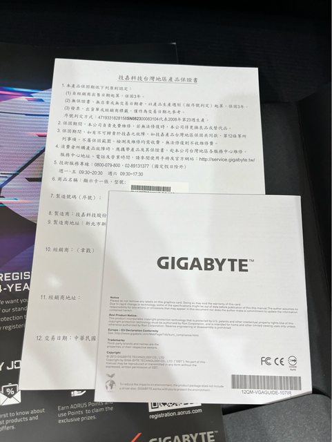 顯示卡和CPU於今年2023年11月到期。顯示卡的保固證明在盒子內,交貨時會讓你確認。