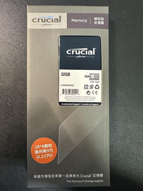 2.美光 筆電記憶體 DDR4 3200 32GB 兩支