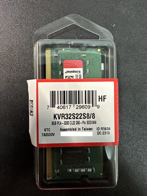 4.金士頓 DDR4 3200 8GB 筆記型記憶體 (KVR32S22S8/8)