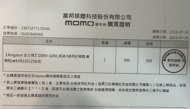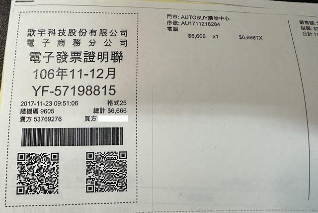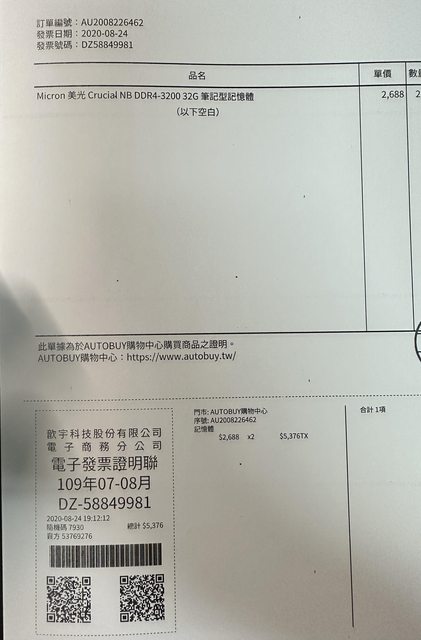 隨貨附購買證明,當初一次買兩支所以開在同一張購買證明