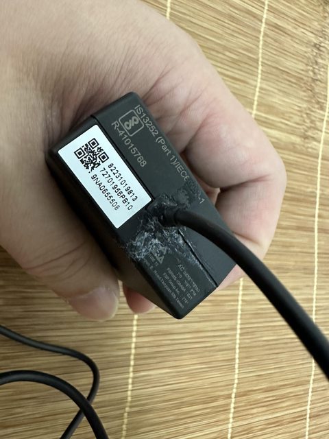 變壓器本體與電源線有用瞬間膠固定痕跡(請見圖)