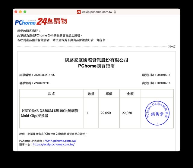 標題[賣/台北/面交] NETGEAR XS508M 8埠10G交換器