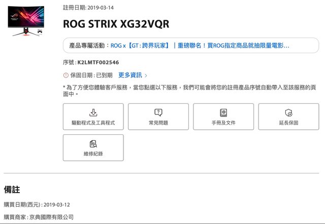 ◎硬體型號:ROG STRIX XG32VQR