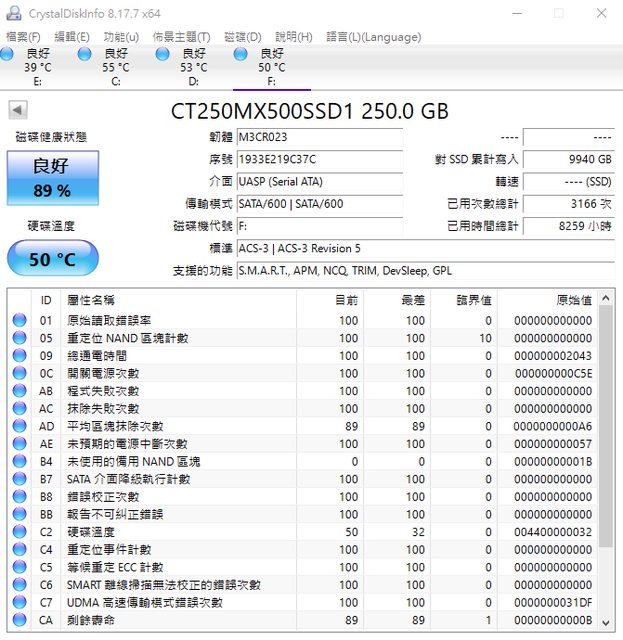 美光 MX 500 250G(已售出)