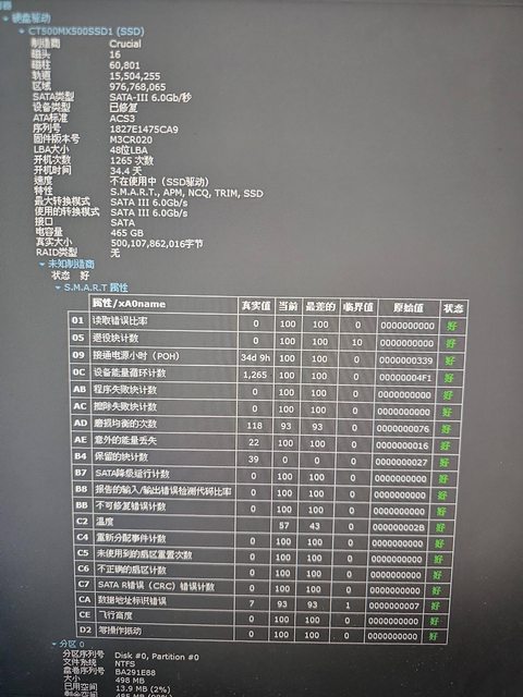 硬碟 美光MX500 500G +500G HDD