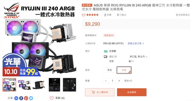 1. ASUS華碩 ROG RYUJIN III 240 ARGB 龍神三代