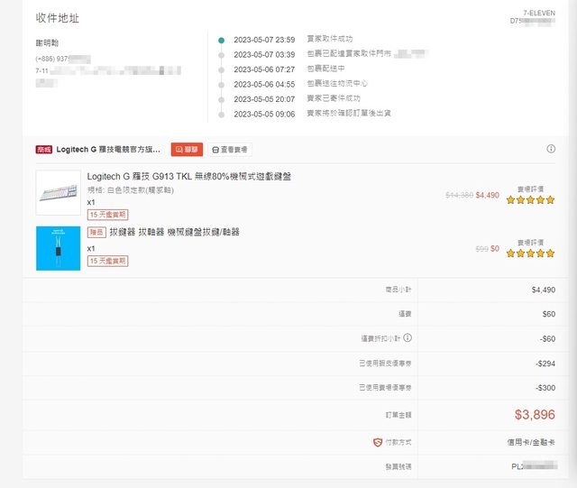 ◎硬體型號: logitech G913 TKL 觸感軸 白色