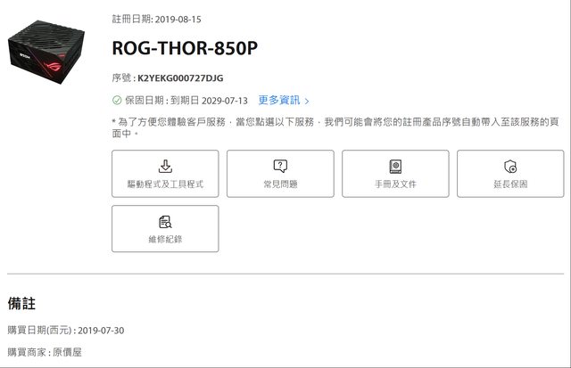 電源保固到2029-7-13,附完整盒裝與零件