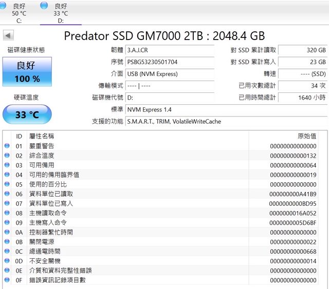 標題[賣/全國/皆可] Acer Predator GM7000 2TB SSD