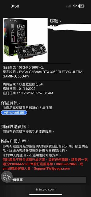 不確定上一手是否有挖礦 有盒,已註冊保固至2025/01