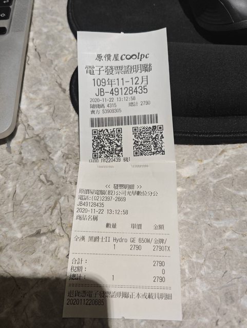 2.b550M 2020/12/26購買 保固到2023/12/24