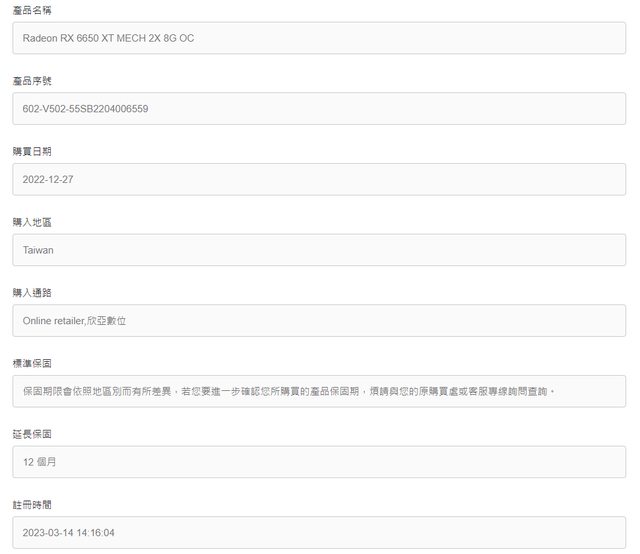 (請附上 1.實物照片 2.購入或保固證明)