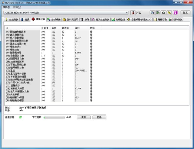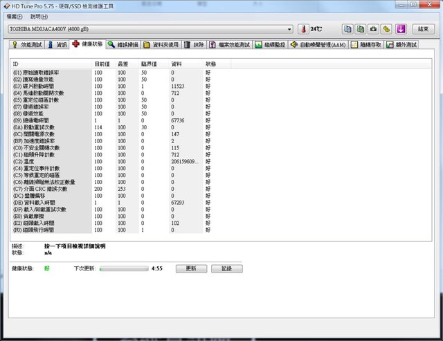 ◎硬體型號: Toshiba MD03ACA400V 4TB 監控級硬碟 * 5