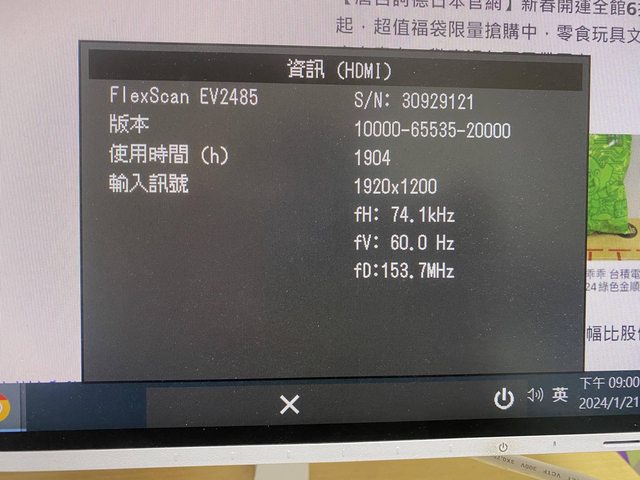 標題[賣/新北/自取] Eizo Ev2485 白色電腦螢幕