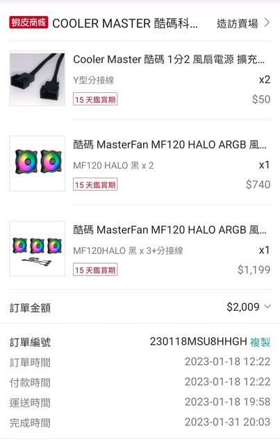 2. 2023/1/18 酷碼蝦皮購入 保固兩年 一顆未使用 附ARGB一分三線和兩條風扇一分二線