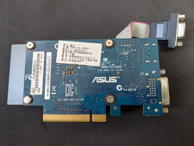 ◎硬體型號: 1. ASUS GT630-SL-2GD3-L 2. ASUS GT630-SL-2GD3-L-SP 3. GIGABYTE GV-N610-1GI ◎欲售價格: 1. 150 2. 150 3. 100 全收350 ◎品樣狀況: 1. 已過保,製造年月2014/01,在櫃子找到,無擋板,上機測試沒問題 2. 已過保,製造年月2013/07,在櫃子找到,無擋板,上機測試沒問題 3. 已過保,製造年月2014/01,在櫃子找到,上機測試沒問題 ◎佐證資料: 1.