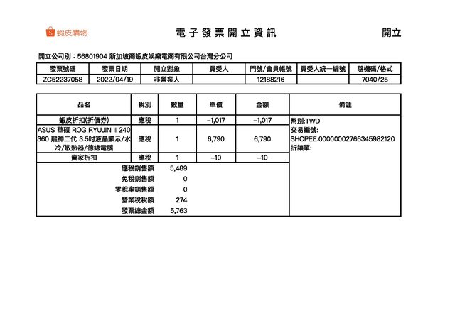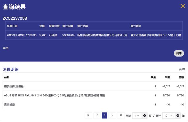 1. 2022/04/19 於蝦皮 德總電腦購入,保固6年
