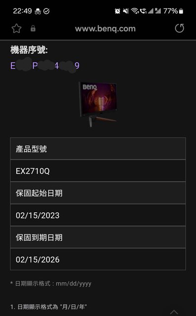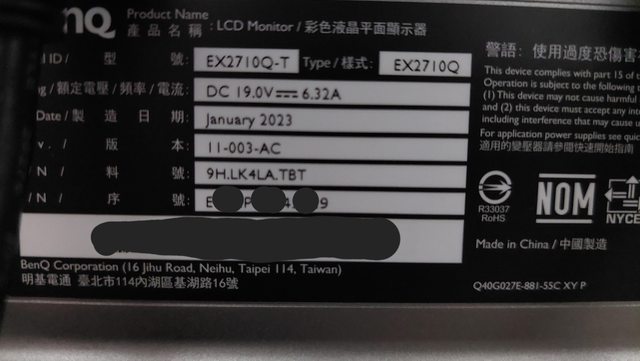 ◎硬體型號: BENQ EX2710Q螢幕