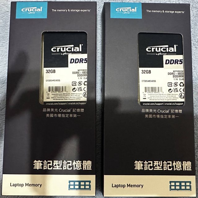 ◎硬體型號: 筆電用Micron DDR5-4800 32GB 兩條