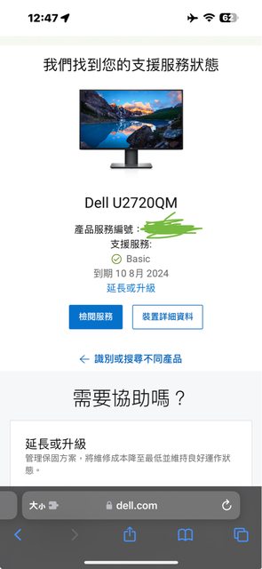 保固到:2024年8月10號。(具備有延長保固的資格,多延兩年是新台幣3600元。)