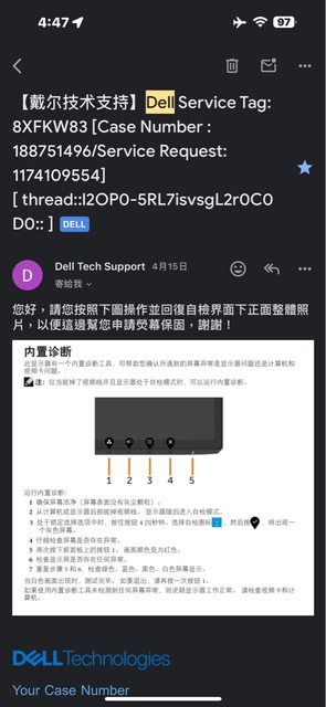 同時也附上RMA郵件佐證該螢幕的來源: