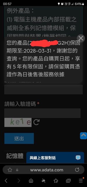 ◎品樣狀況: 保固五年,2024/3/19從威剛高雄服務中心RMA全新回來未使用過,保固至2