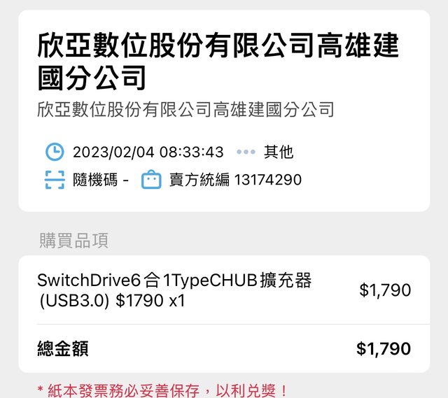 2. 112/02/04 自欣亞官網購得,3年保固,完整配件