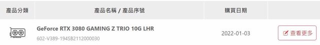 4. VGA MSI 3080 trio 10G 有盒,2022/01註冊