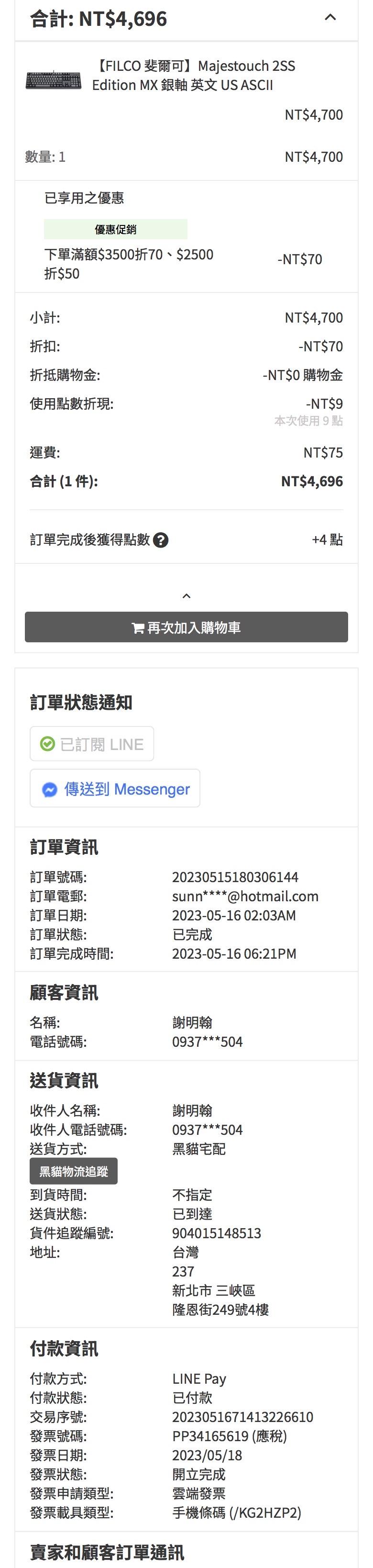 FILCO鍵盤無法店到店需郵寄,價格已含運