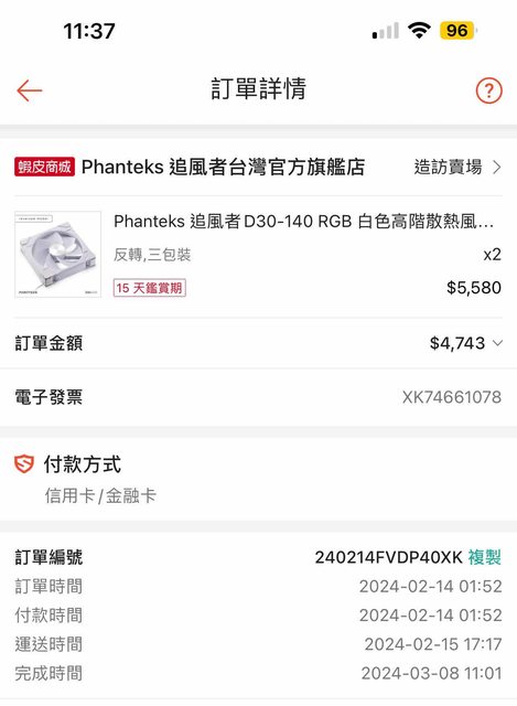 ◎硬體型號: Phanteks 追風者D30-140白色 反轉風扇 三顆裝